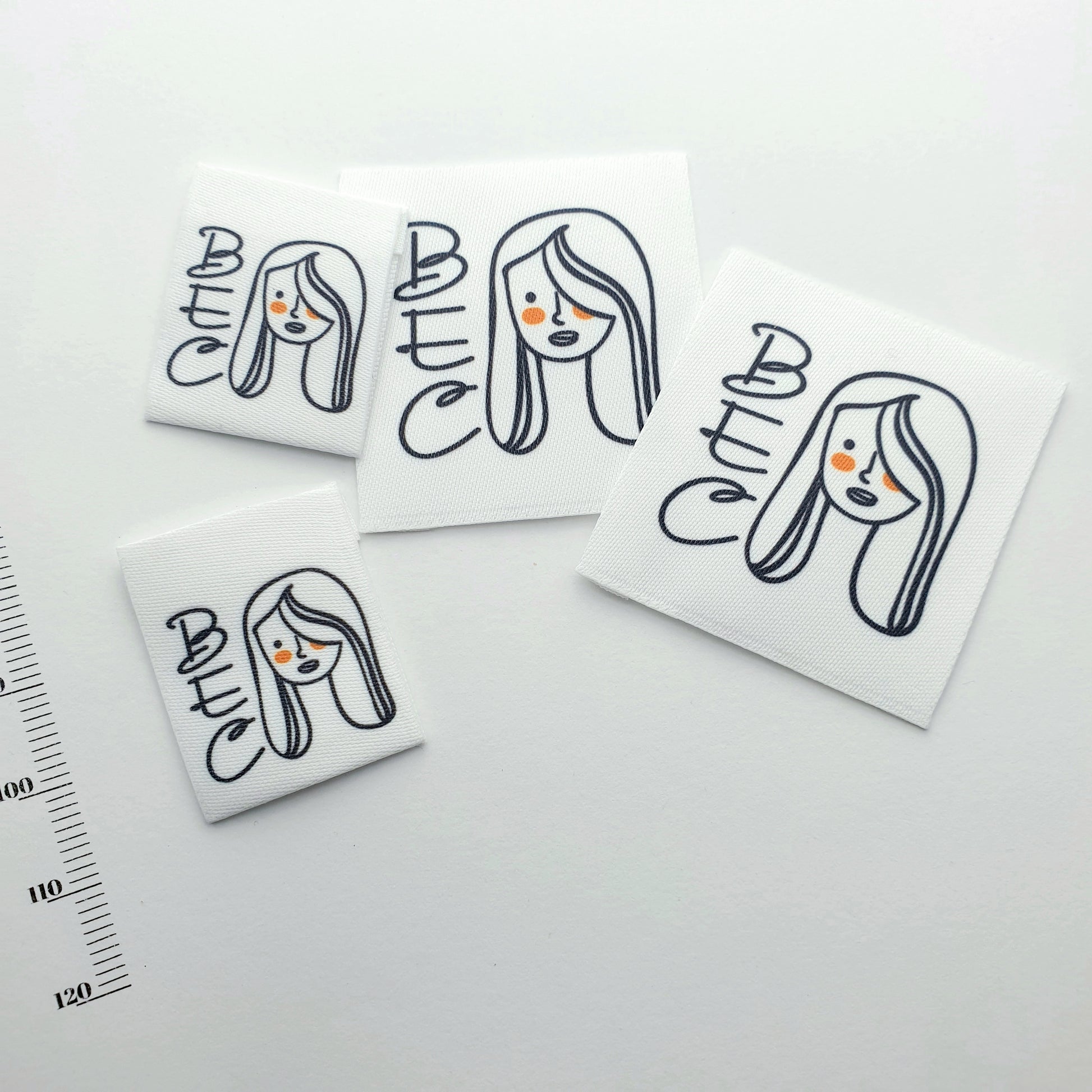 Custom printed labels with your information. These can be logo labels or combined labels with brand/logo plus sizes.